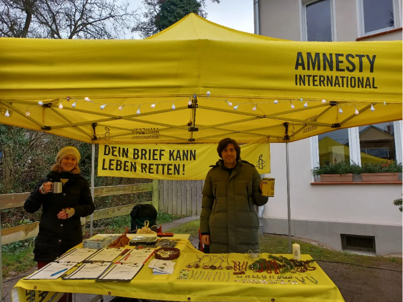 Am 06.12.2025 hatten wir zum ersten Mal einen Stand auf dem Weihnachtsmarkt an der Holzlarer Mühle. Dort verkauften wir selbstgemachten Schmuck und sammelten Unterschriften für den jährlich stattfindenden Briefmarathon von Amnesty International.